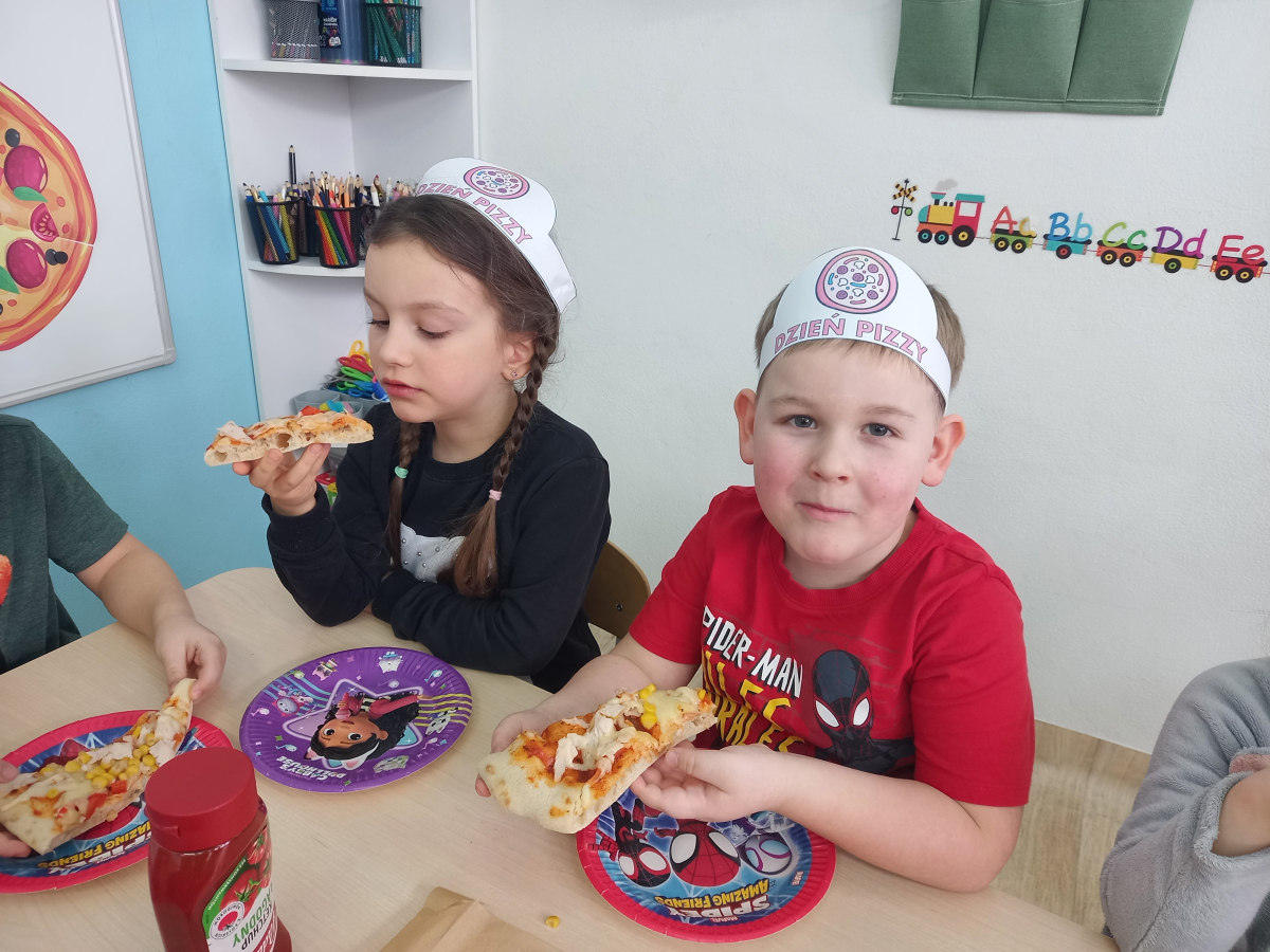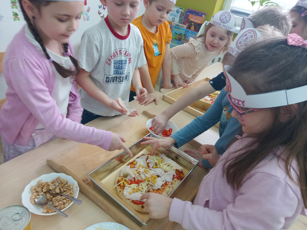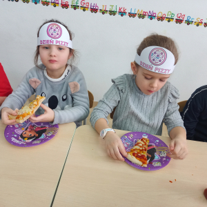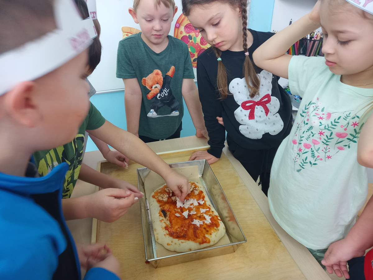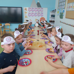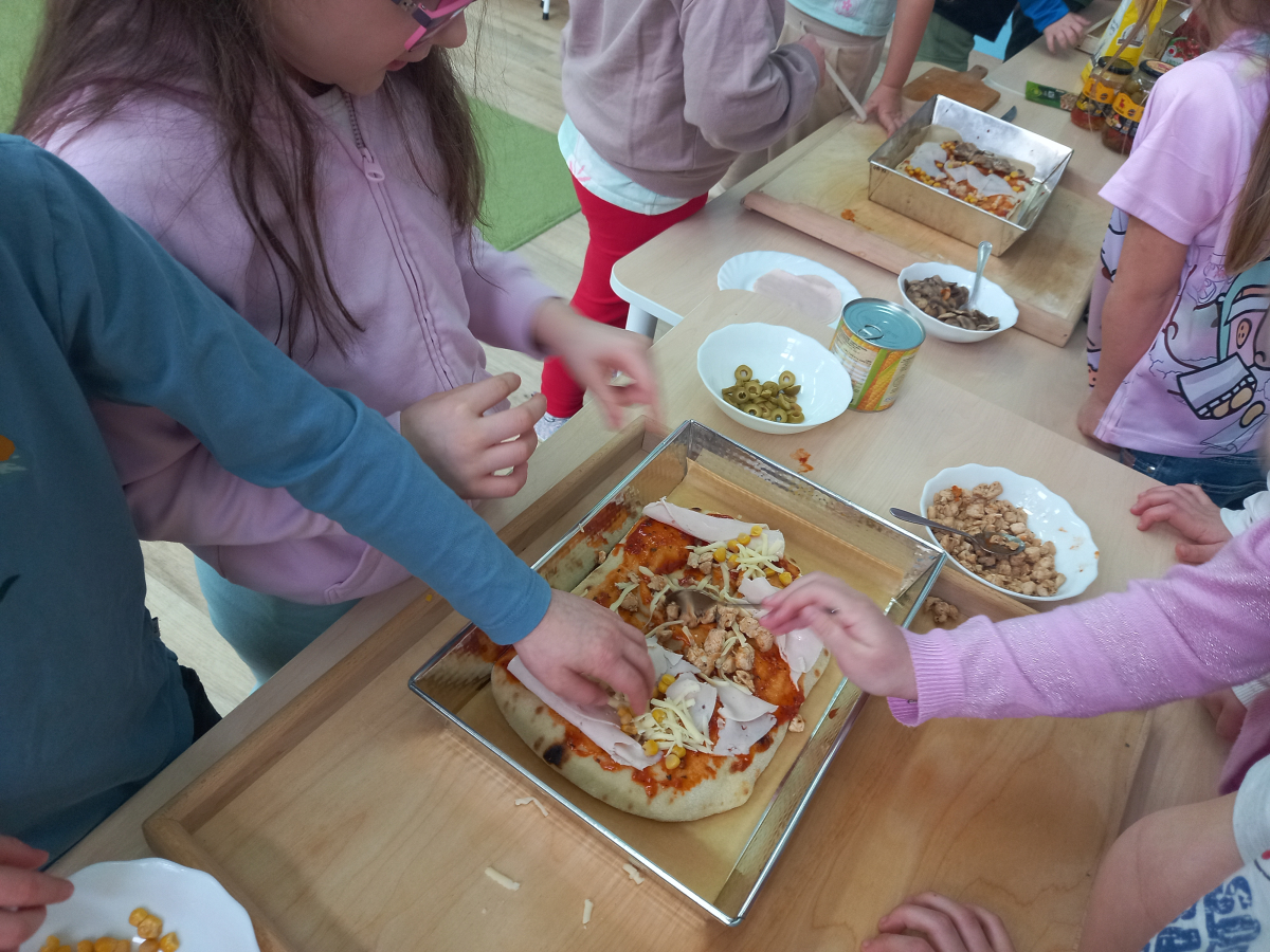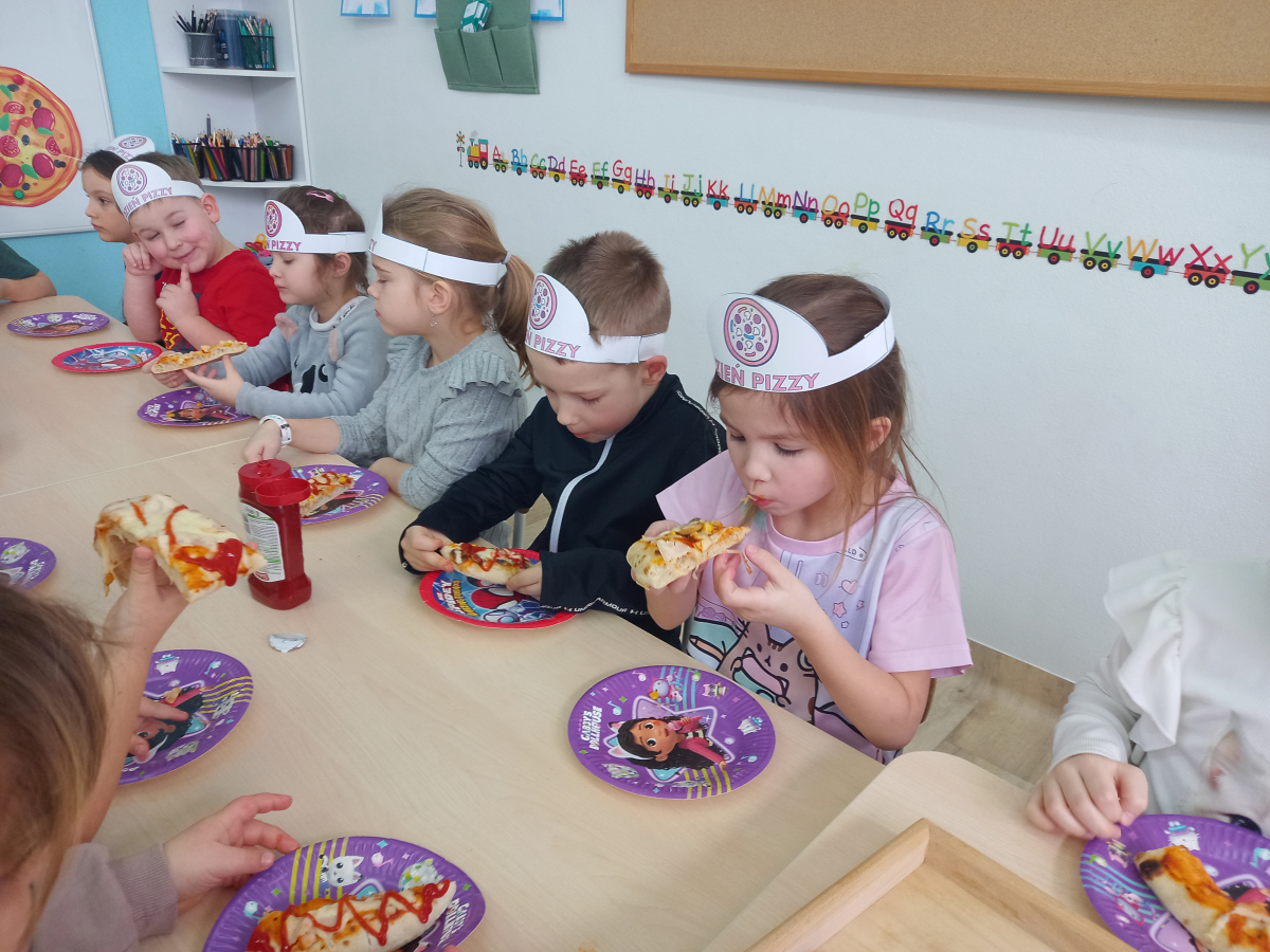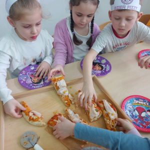 Dziś w naszym przedszkolu obchodziliśmy Dzień Pizzy. Dzieci miały okazję samodzielnie przygotować swoje pyszne pizze – smarowały ciasto sosem, wybierały ulubione składniki i tworzyły kolorowe kompozycje. Było przy tym mnóstwo radości, śmiechu i świetnej zabawy!