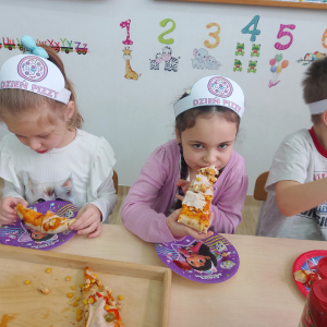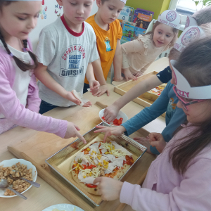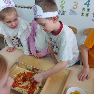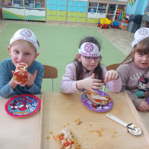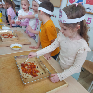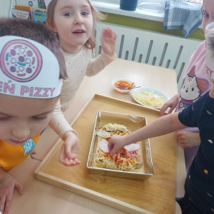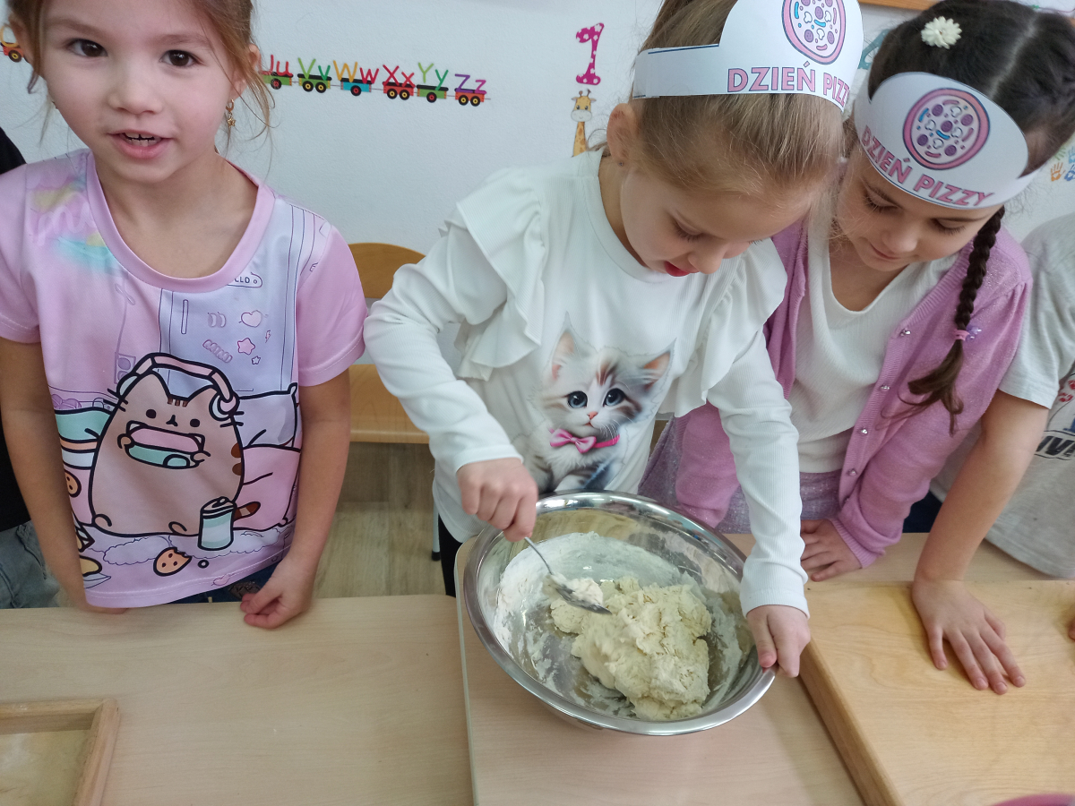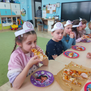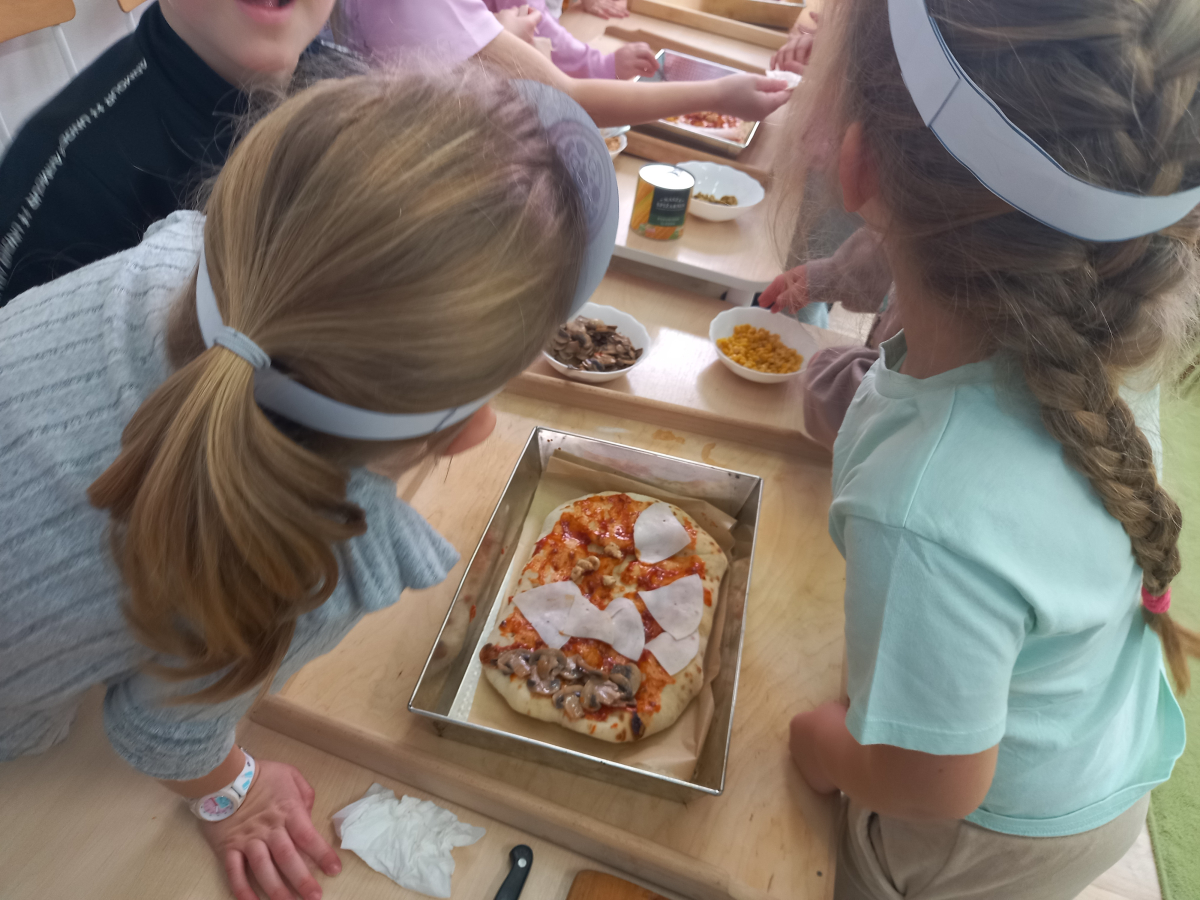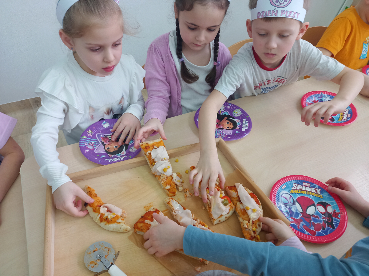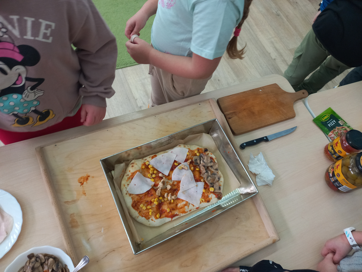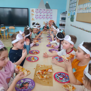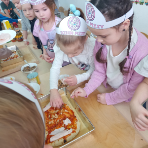 Dziś w naszym przedszkolu obchodziliśmy Dzień Pizzy. Dzieci miały okazję samodzielnie przygotować swoje pyszne pizze – smarowały ciasto sosem, wybierały ulubione składniki i tworzyły kolorowe kompozycje. Było przy tym mnóstwo radości, śmiechu i świetnej zabawy!