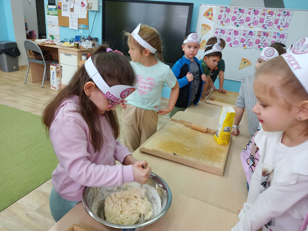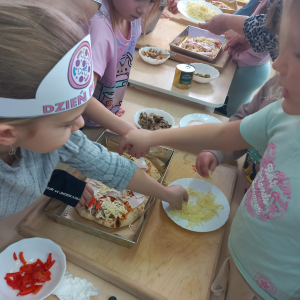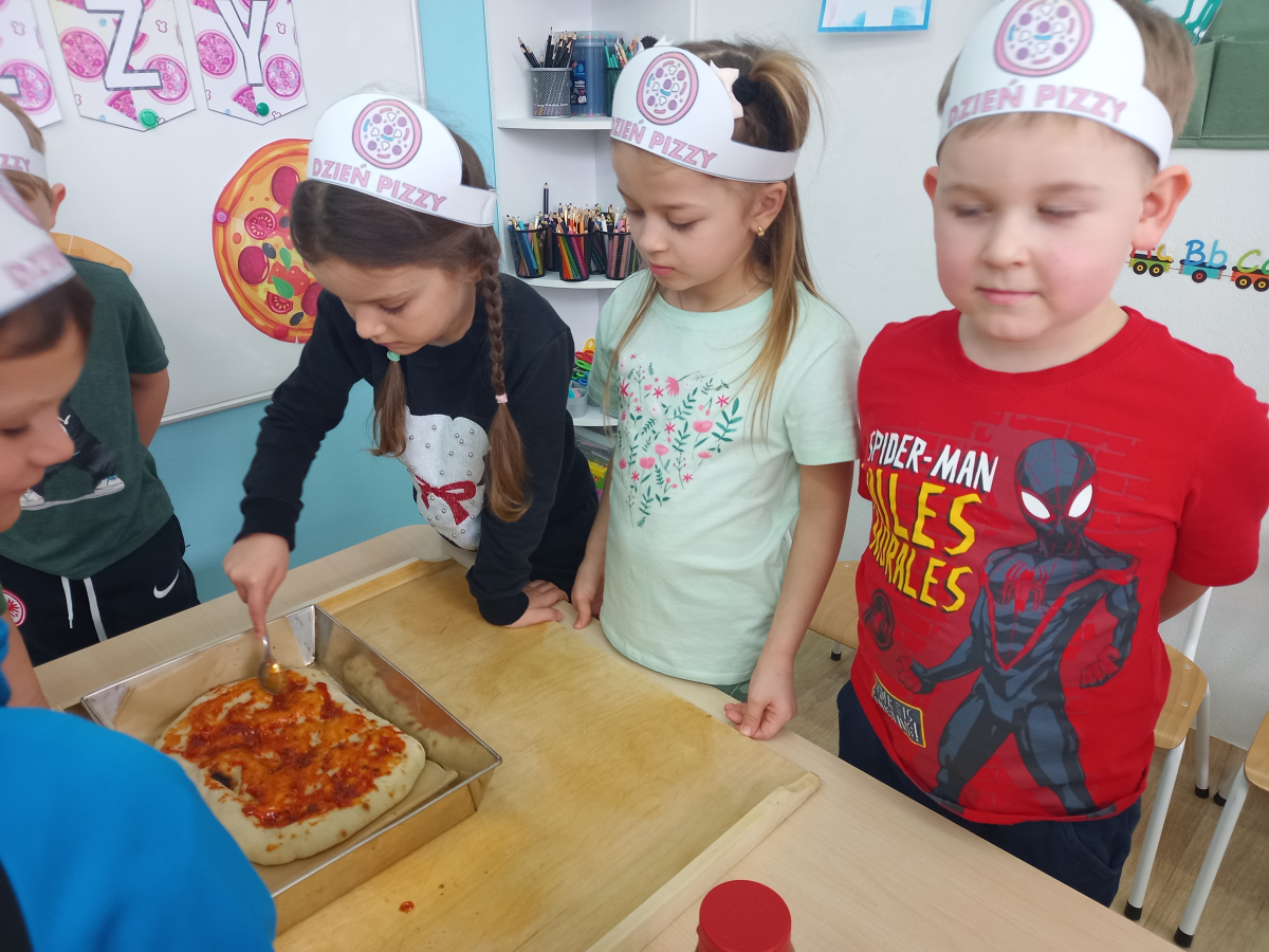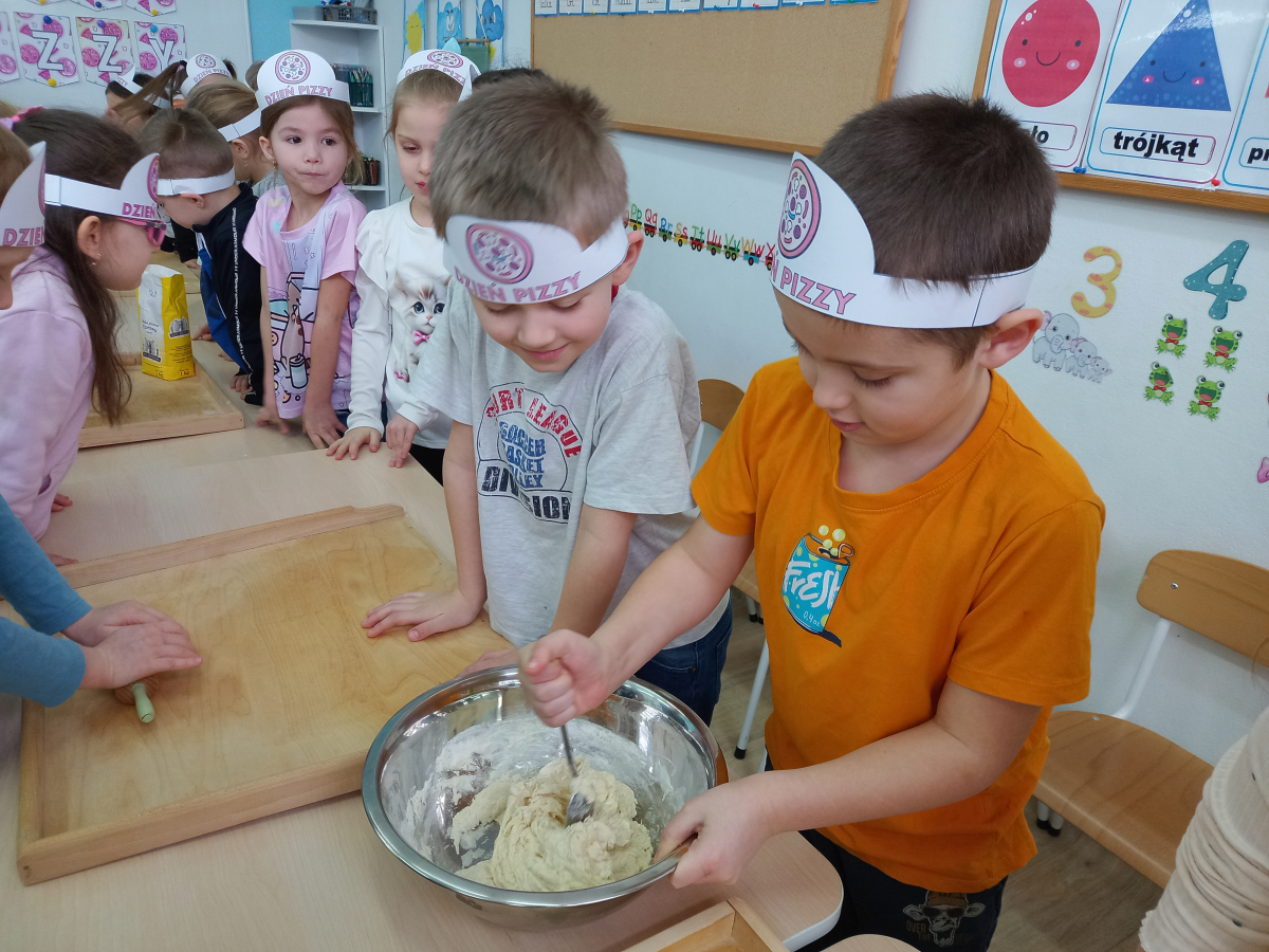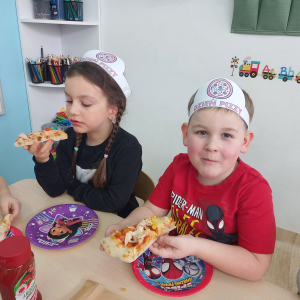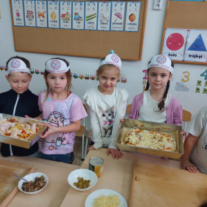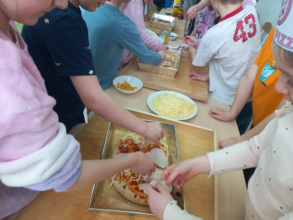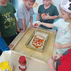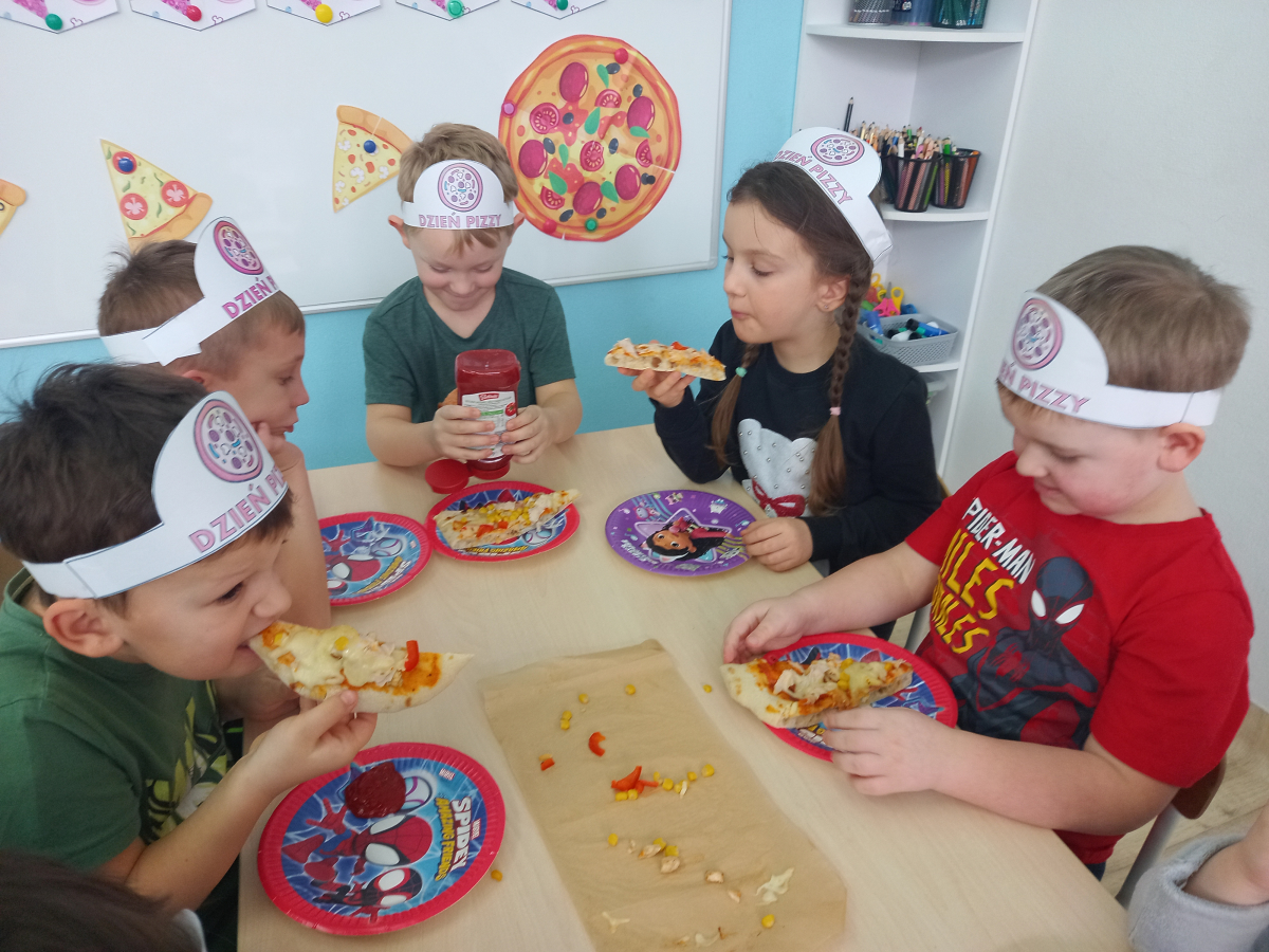 Dziś w naszym przedszkolu obchodziliśmy Dzień Pizzy. Dzieci miały okazję samodzielnie przygotować swoje pyszne pizze – smarowały ciasto sosem, wybierały ulubione składniki i tworzyły kolorowe kompozycje. Było przy tym mnóstwo radości, śmiechu i świetnej zabawy!