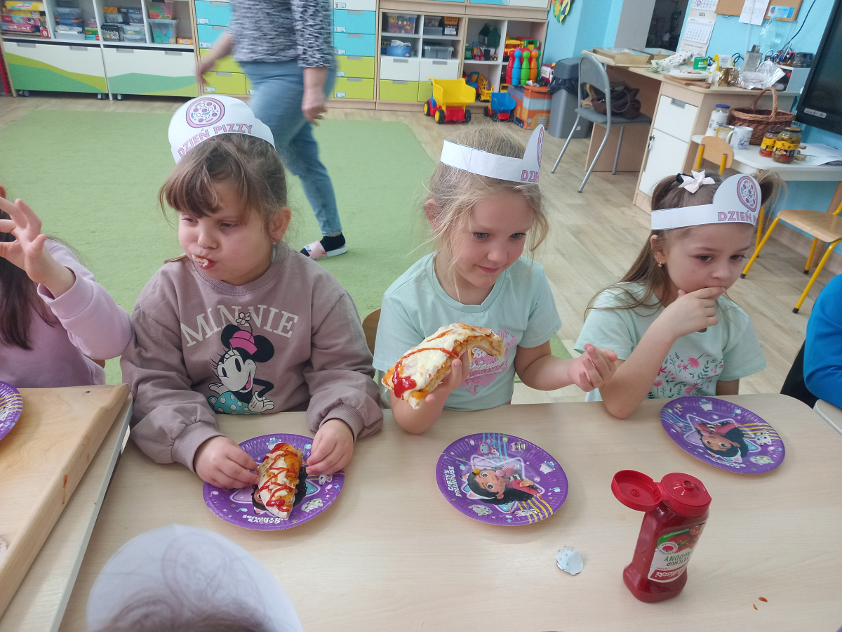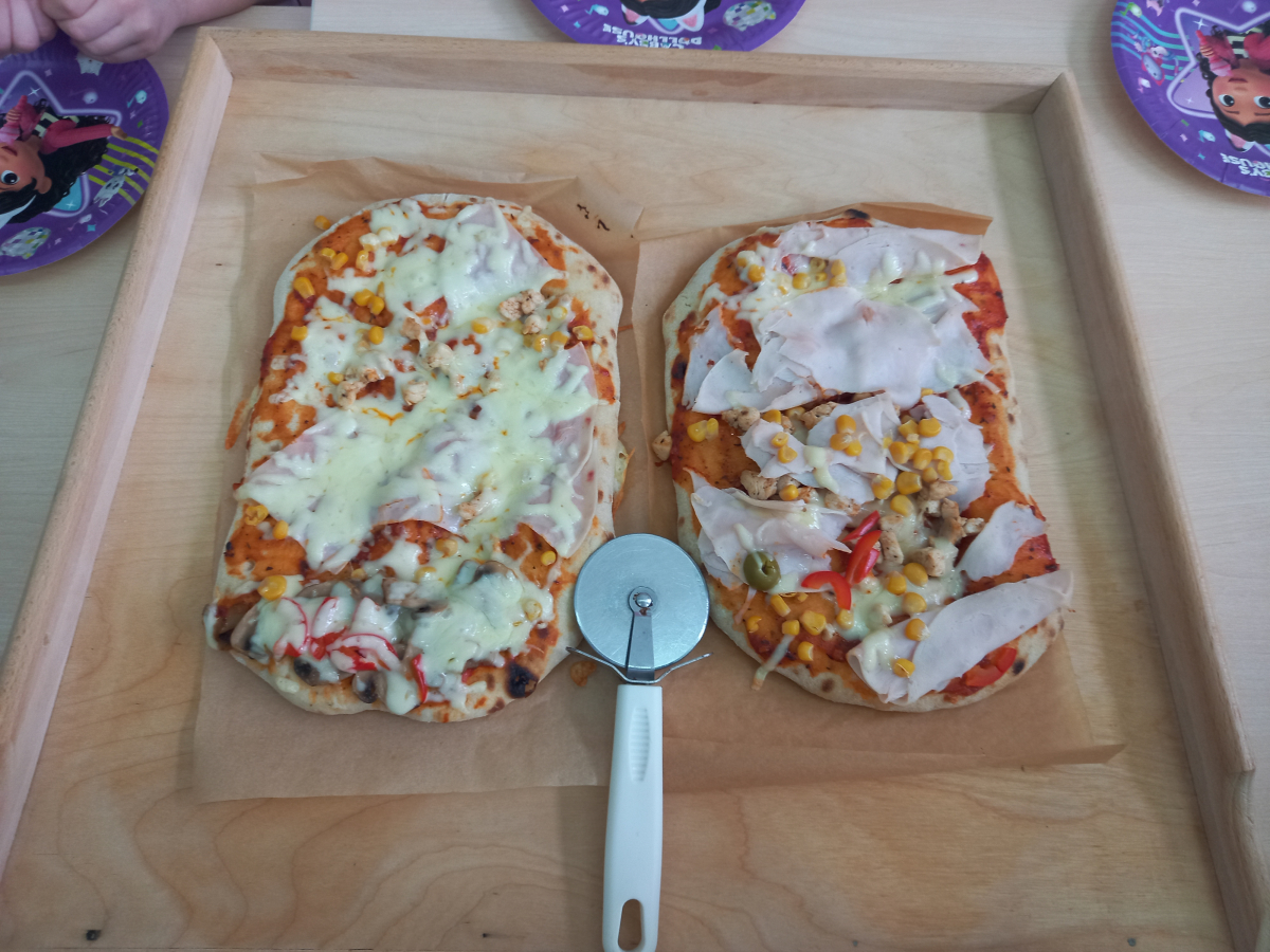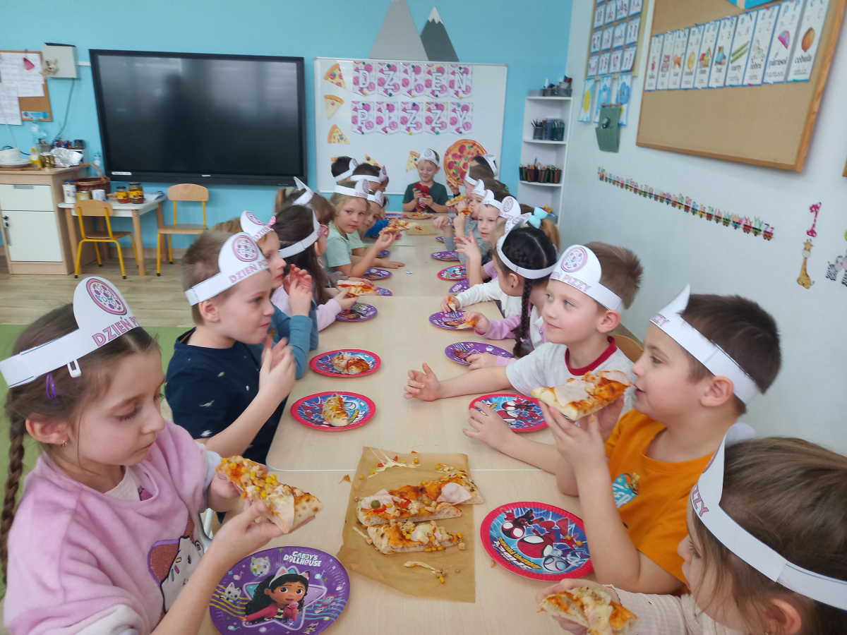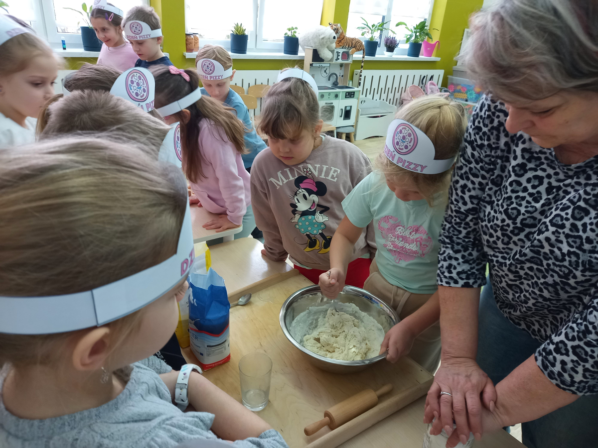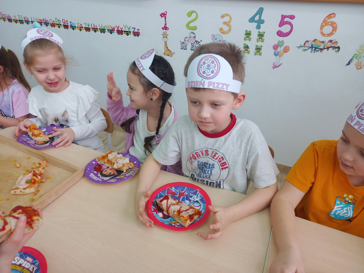 Dziś w naszym przedszkolu obchodziliśmy Dzień Pizzy. Dzieci miały okazję samodzielnie przygotować swoje pyszne pizze – smarowały ciasto sosem, wybierały ulubione składniki i tworzyły kolorowe kompozycje. Było przy tym mnóstwo radości, śmiechu i świetnej zabawy!