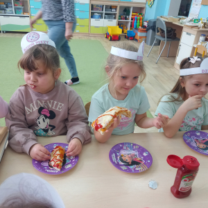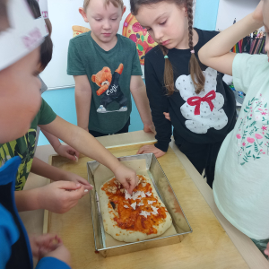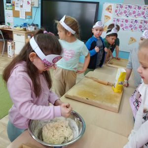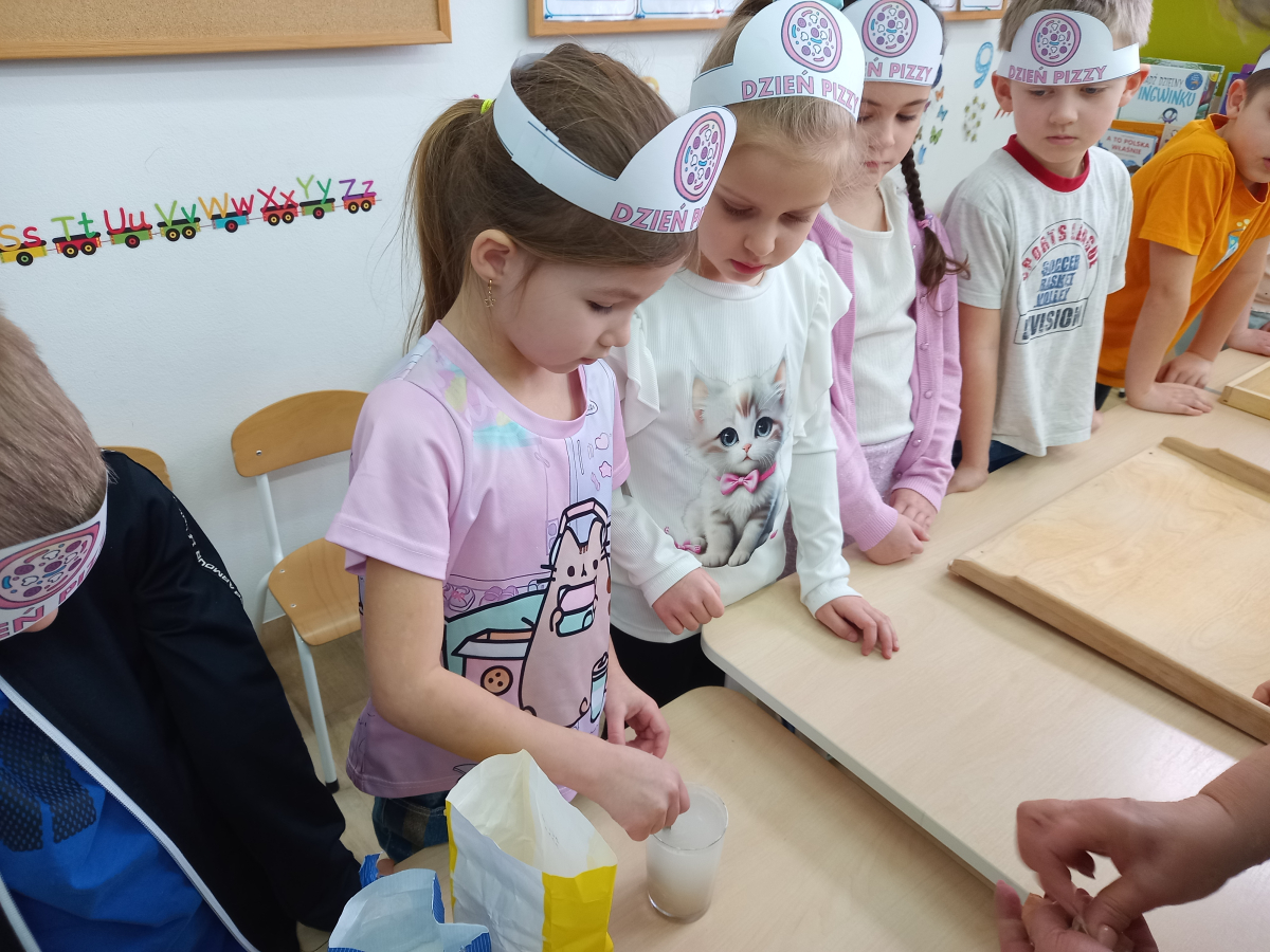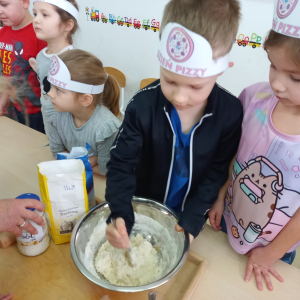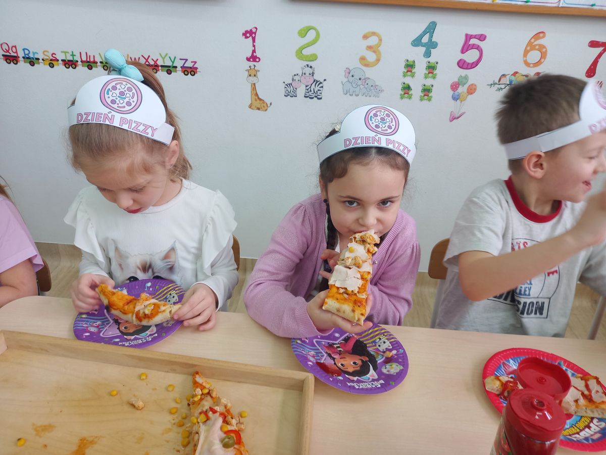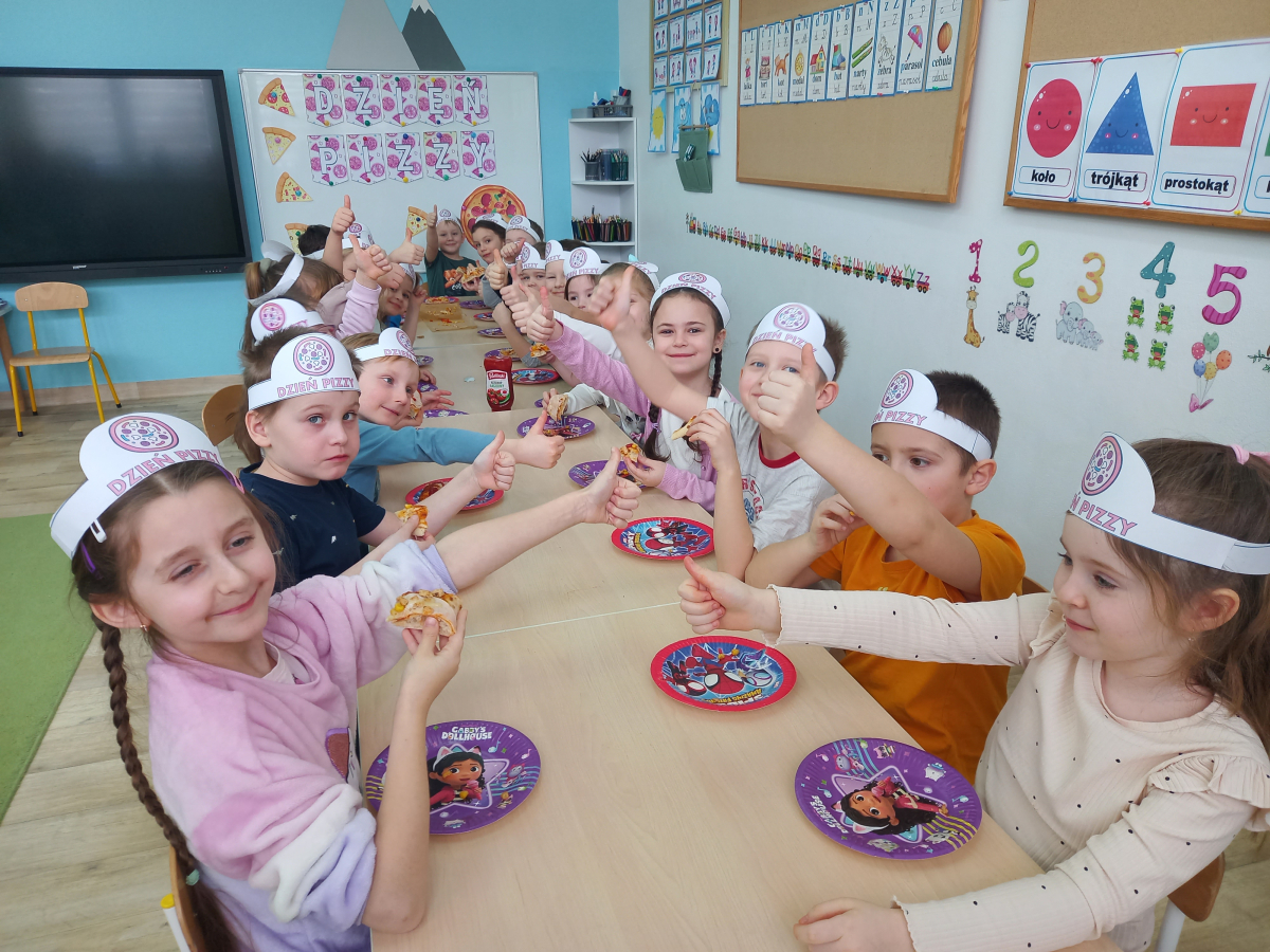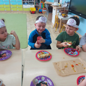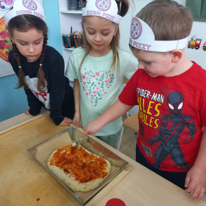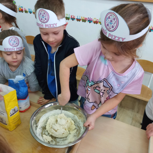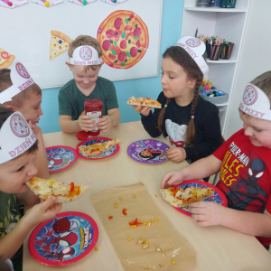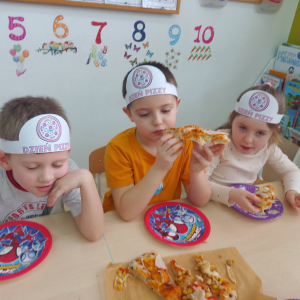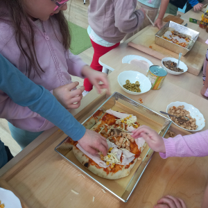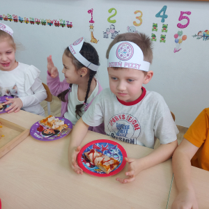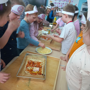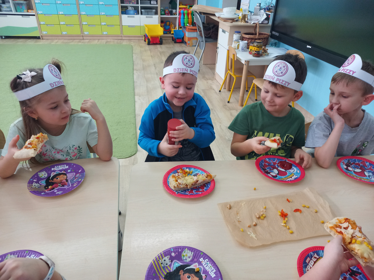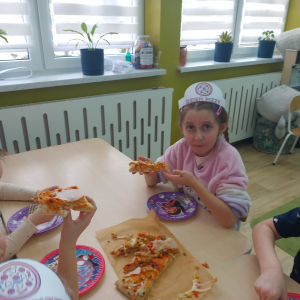 Dziś w naszym przedszkolu obchodziliśmy Dzień Pizzy. Dzieci miały okazję samodzielnie przygotować swoje pyszne pizze – smarowały ciasto sosem, wybierały ulubione składniki i tworzyły kolorowe kompozycje. Było przy tym mnóstwo radości, śmiechu i świetnej zabawy!