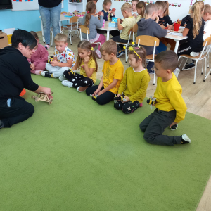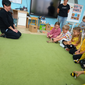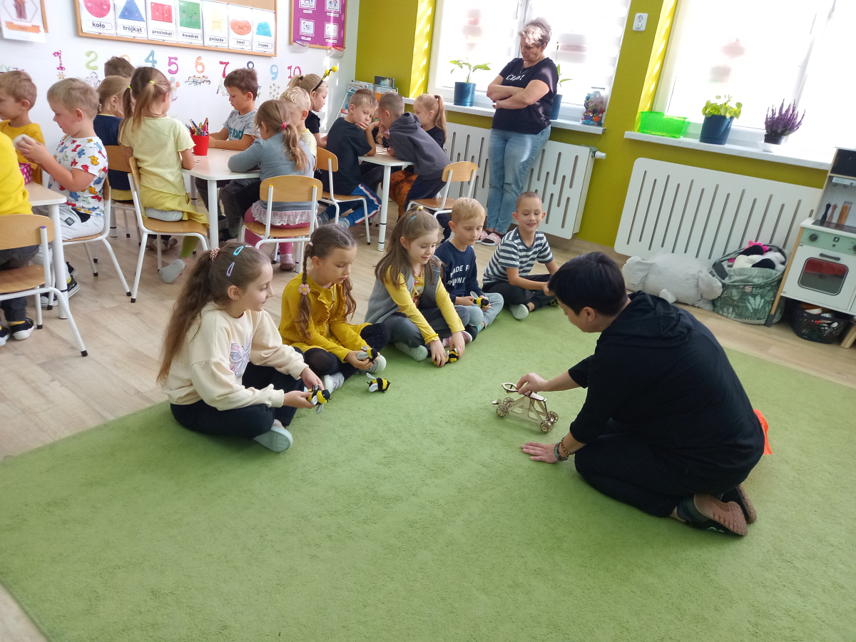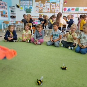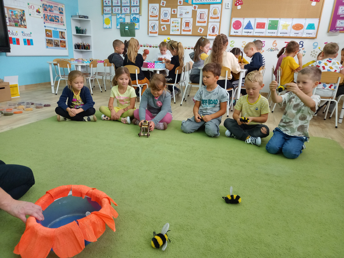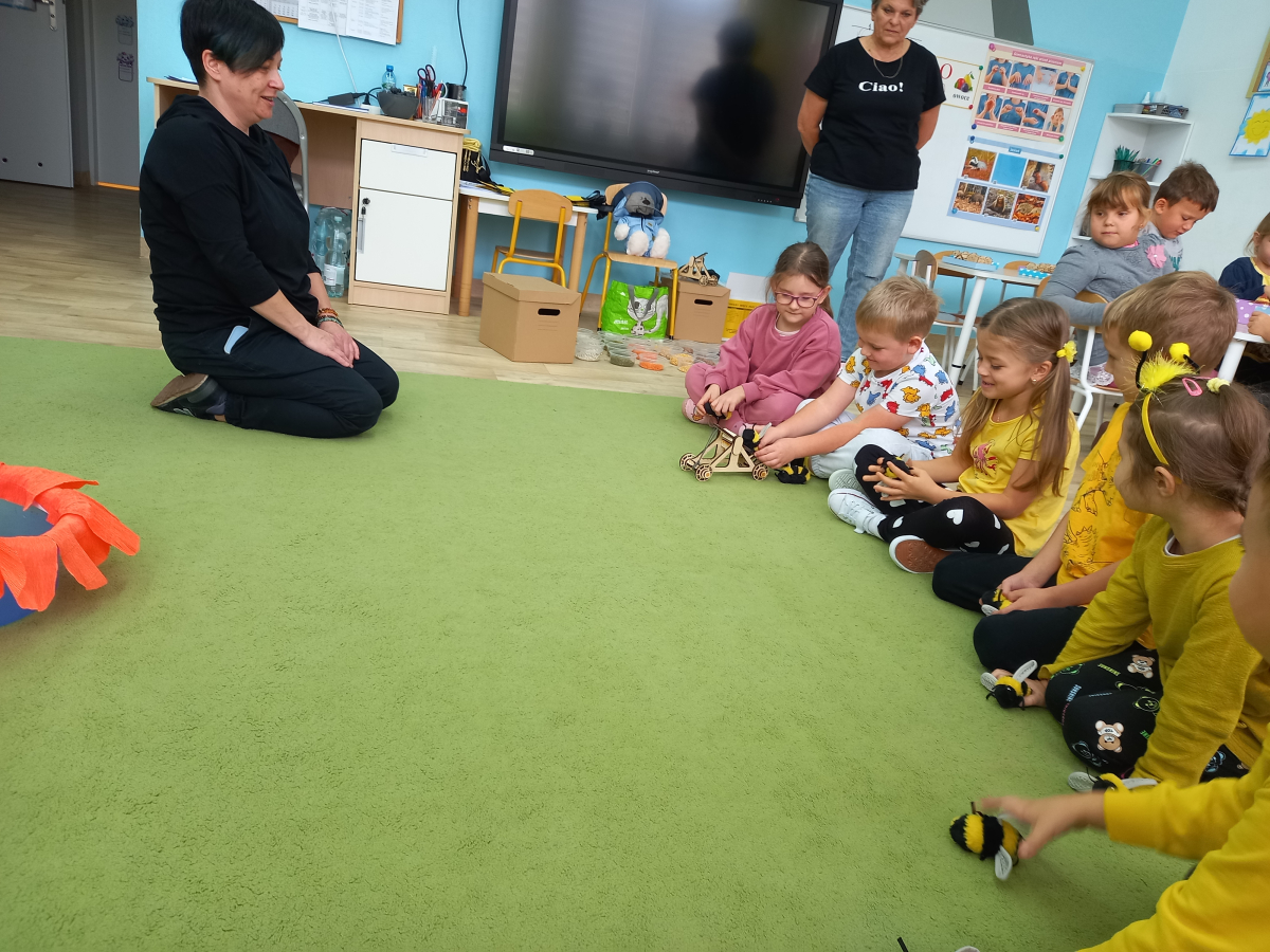 Dzisiaj tj. 03.10.2025 dzieci z naszej grupy miały przyjemność uczestniczyć w wspaniałych zajęciach w ramach projektu "Pszczoły nasi mali bohaterowie".