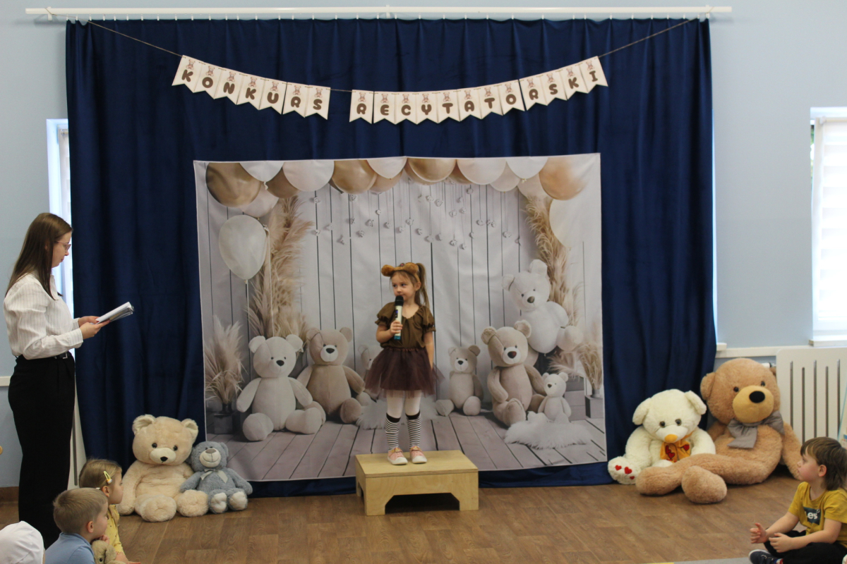 W dniu dzisiejszym w naszym przedszkolu odbył się konkurs recytatorski pt. ”Misie, miśki i misiaczki”