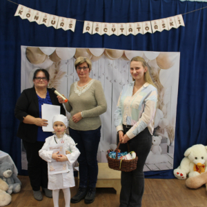 Dzieci, które zajęły podium otrzymały nagrody rzeczowe oraz dyplomy. Pozostali uczestnicy otrzymali pamiątkowe dyplomy oraz drobne upominki.