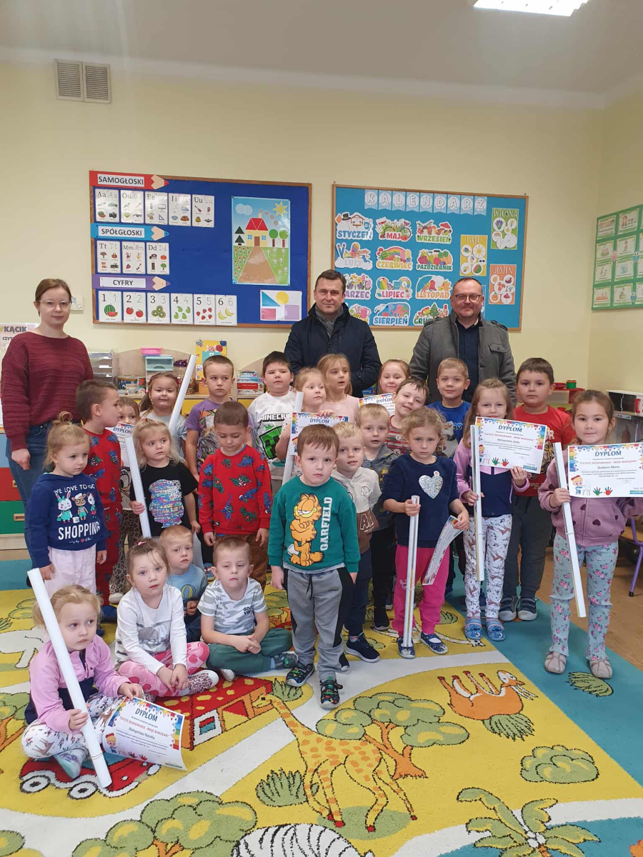 Z dumą informujemy, że nasze przedszkolaki wzięły udział w konkursie plastycznym pt. „Czyste środowisko – moje marzenie”, zorganizowanym przez Spółkę Komunalną „Dorzecze Białej”. Ich kreatywność i zaangażowanie zostały docenione – otrzymaliśmy wyróżnienie, a nagrodzona praca znajdzie się w kalendarzu Spółki na rok 2026. W ramach nagrody dzieci otrzymały materiały plastyczne oraz szablony do prac twórczych, a każdy uczestnik konkursu został dodatkowo obdarowany dyplomem oraz kalendarzem na rok 2026. Serdecznie gratulujemy naszym małym artystom!