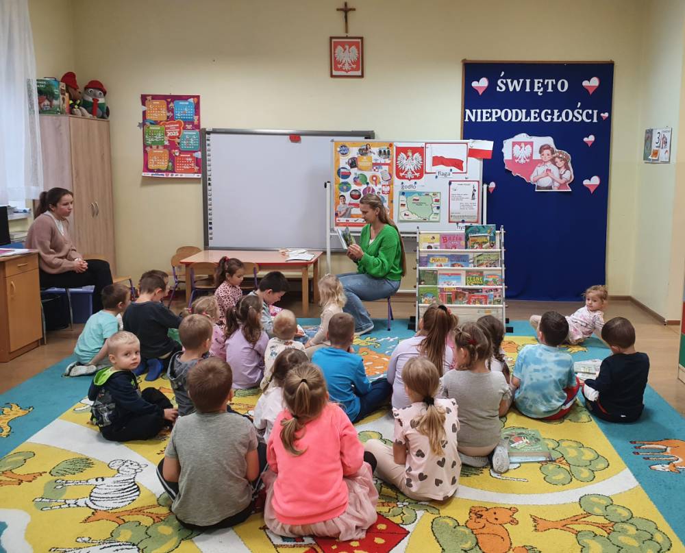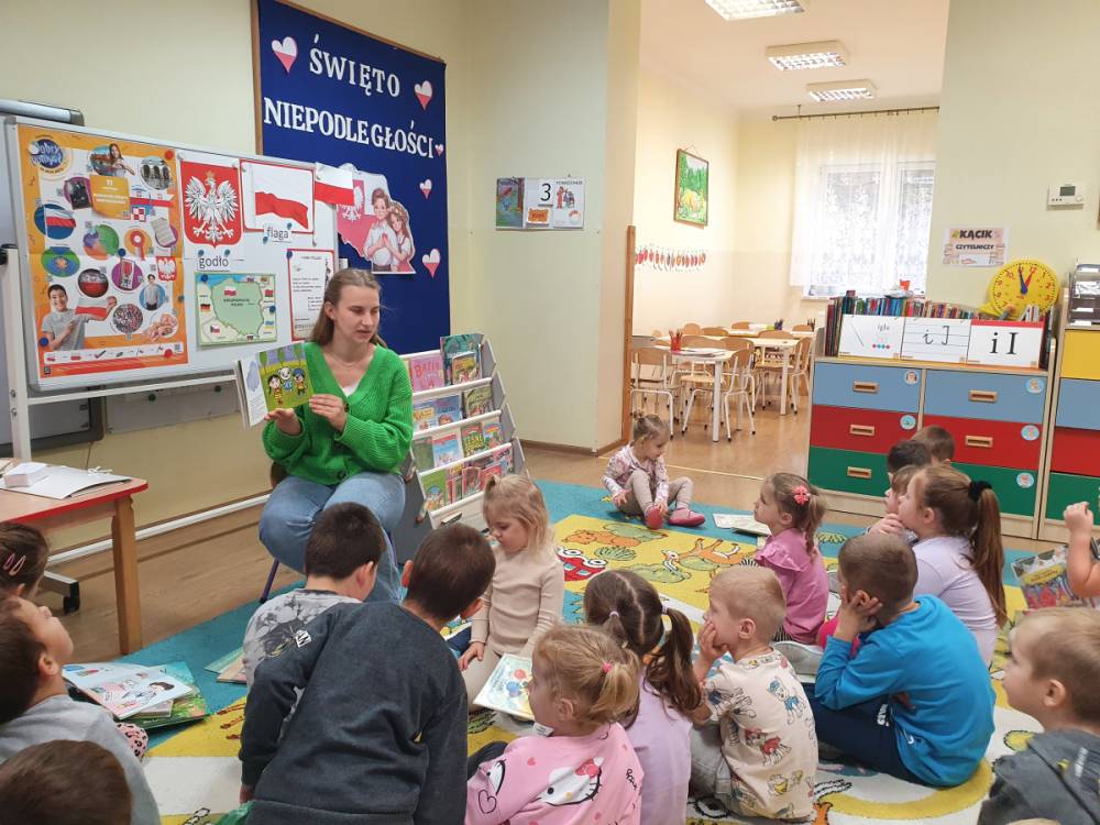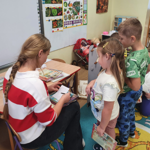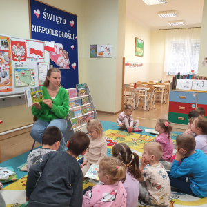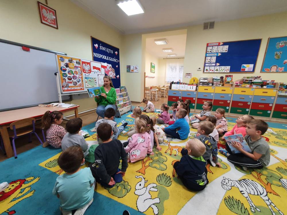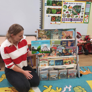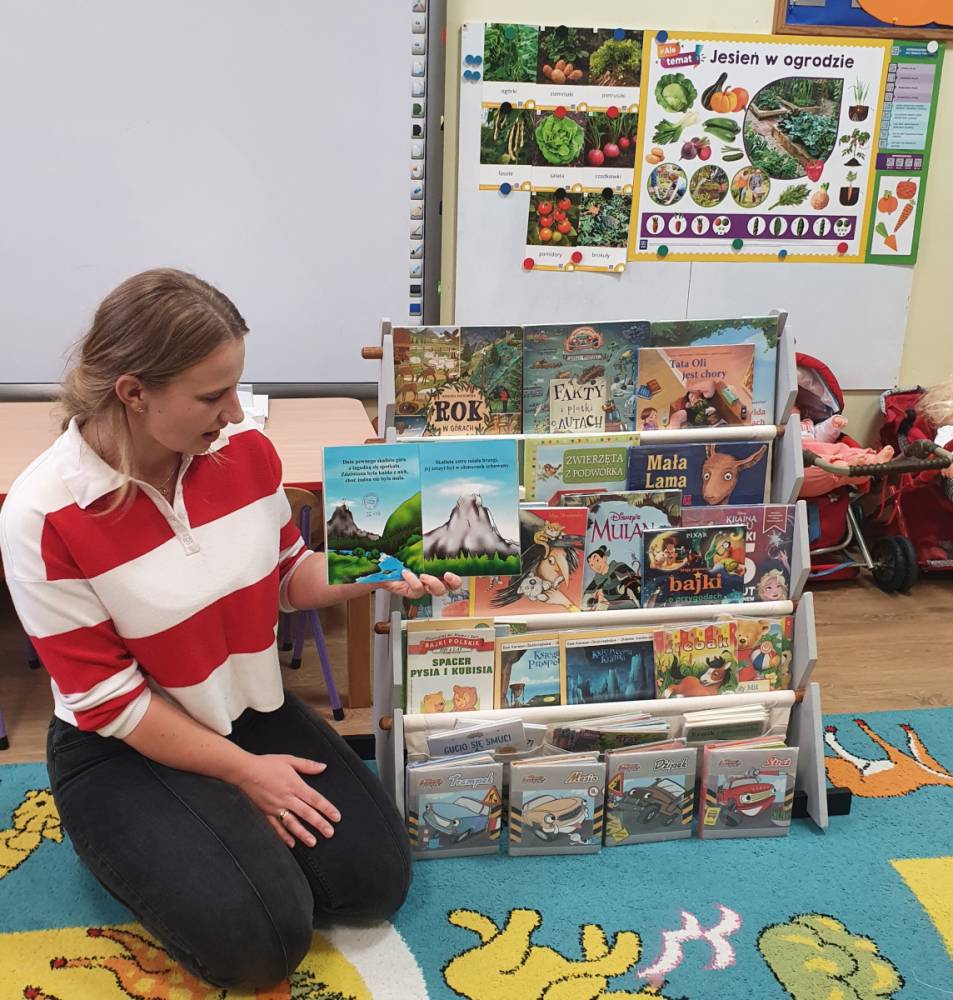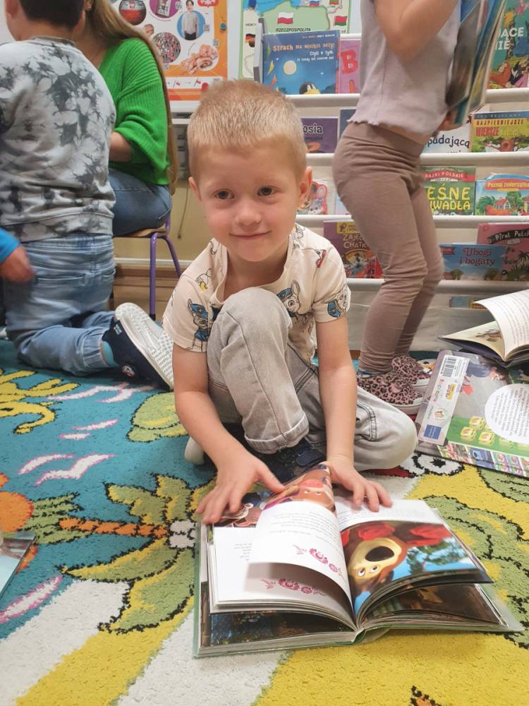 W ramach akcji „Mobiliteka dla małego człowieka” najmłodsi mają możliwość wypożyczania lub oddawania książek dzięki mobilnej bibliotece. Pani Alicja Witek, bibliotekarka z pobliskiej biblioteki, odwiedza nasze Sówki w każdy poniedziałek. Dzieci z niecierpliwością wyczekują spotkania z panią Alą, aby posłuchać ulubionych bajek, wypożyczyć nowe, ciekawe książeczki, a także porozmawiać o przeczytanych historiach i podzielić się swoimi czytelniczymi wrażeniami. Serdecznie dziękujemy pani Alicji za rozwijanie w dzieciach pasji do czytania i wspólne literackie przygody!