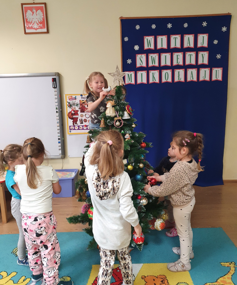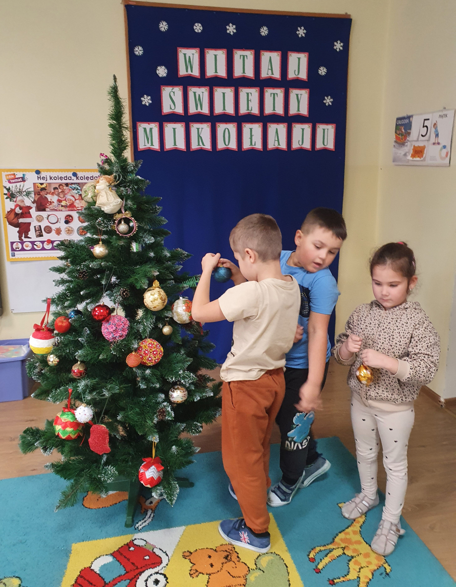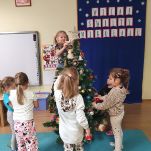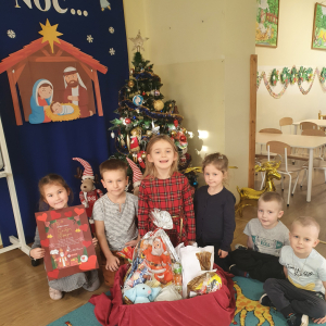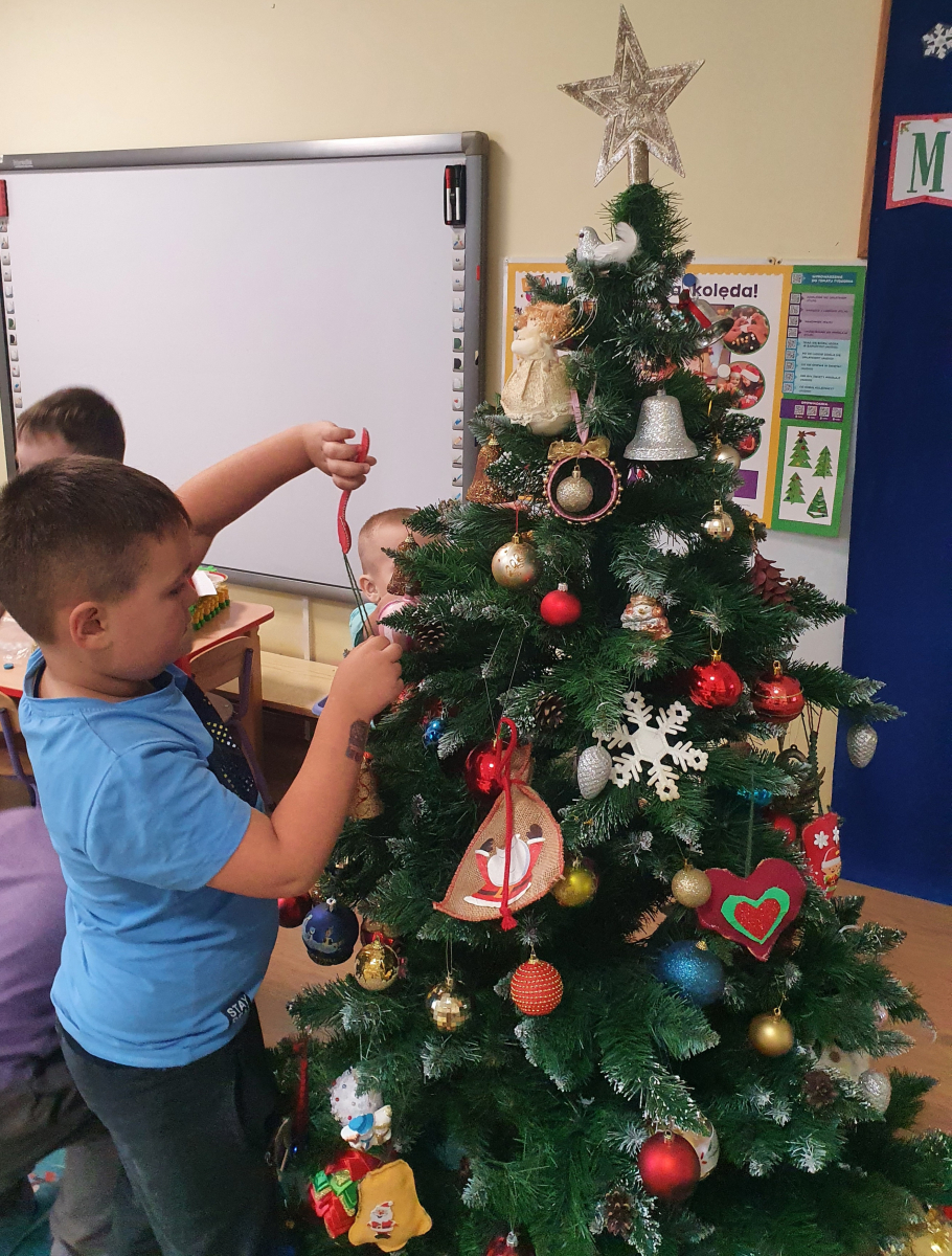 Przez cały grudzień grupa Sówki przygotowywała się do Świąt Bożego Narodzenia. Przedszkolaki codziennie otwierały okienka w kalendarzu adwentowym i z radością wykonywały różnorodne zadania. Wiele radości sprawiło dzieciom wspólne pieczenie pierniczków, które wprowadziło wszystkich w prawdziwie świąteczny nastrój. Ogromnym przeżyciem było także strojenie choinki, na które przedszkolaki czekały z niecierpliwością. W przedświątecznym czasie dzieci włączyły się w akcję charytatywną „I Ty możesz zostać Świętym Mikołajem”, pomagając w ten sposób podopiecznym Stowarzyszenia oraz dzieciom z Domów Dziecka.