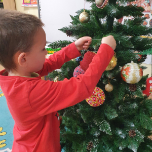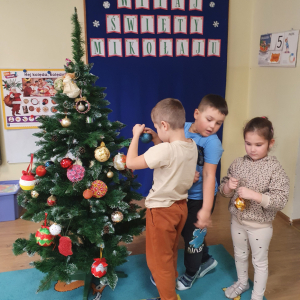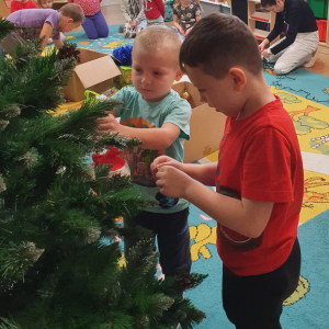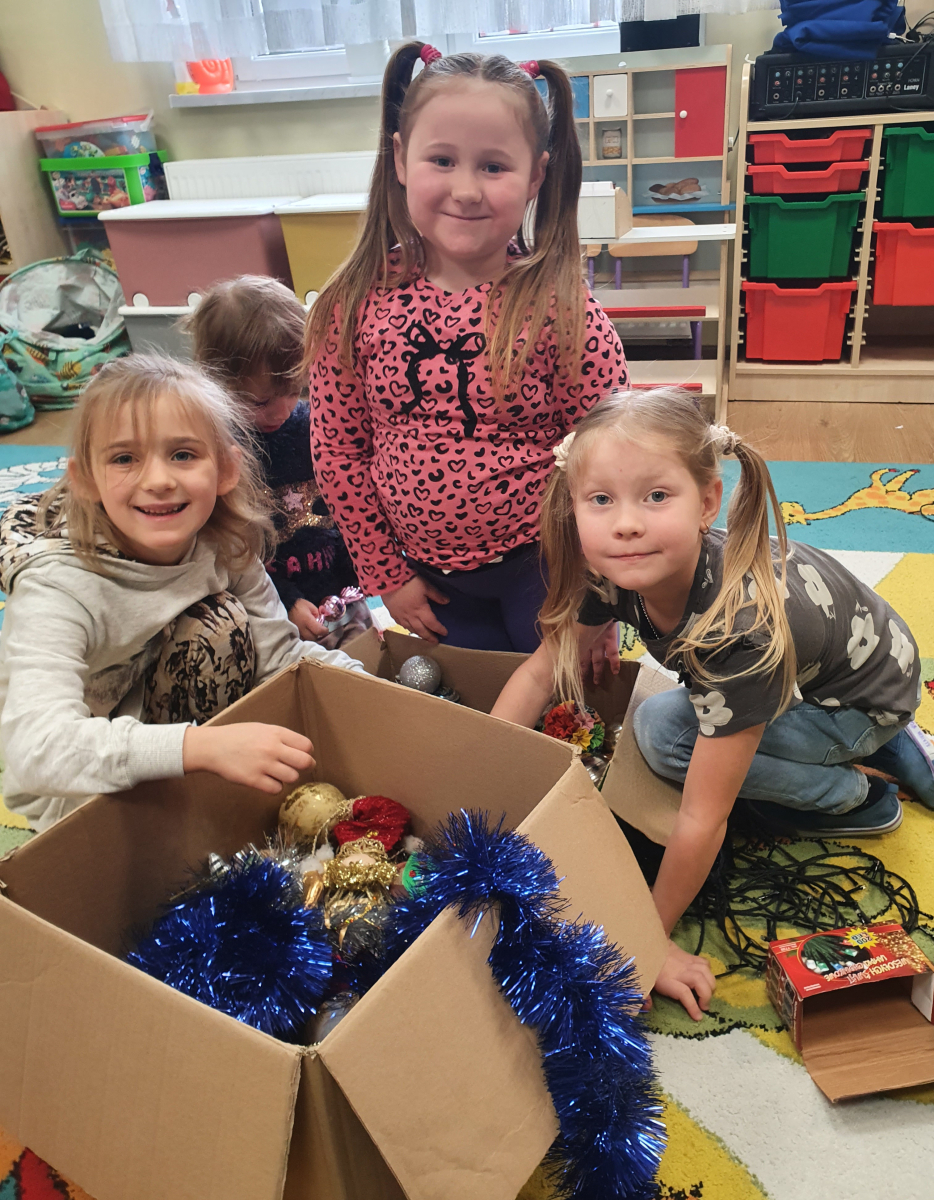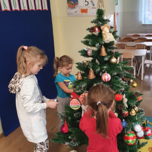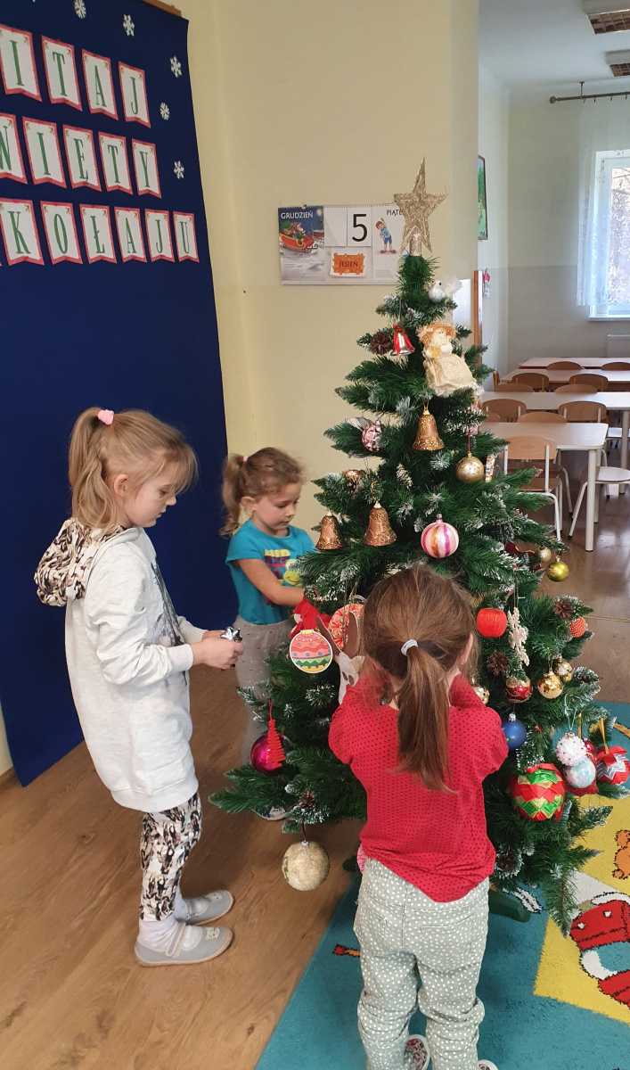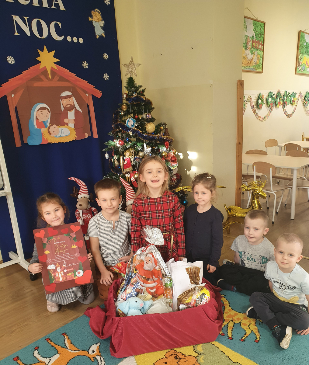 Przez cały grudzień grupa Sówki przygotowywała się do Świąt Bożego Narodzenia. Przedszkolaki codziennie otwierały okienka w kalendarzu adwentowym i z radością wykonywały różnorodne zadania. Wiele radości sprawiło dzieciom wspólne pieczenie pierniczków, które wprowadziło wszystkich w prawdziwie świąteczny nastrój. Ogromnym przeżyciem było także strojenie choinki, na które przedszkolaki czekały z niecierpliwością. W przedświątecznym czasie dzieci włączyły się w akcję charytatywną „I Ty możesz zostać Świętym Mikołajem”, pomagając w ten sposób podopiecznym Stowarzyszenia oraz dzieciom z Domów Dziecka.